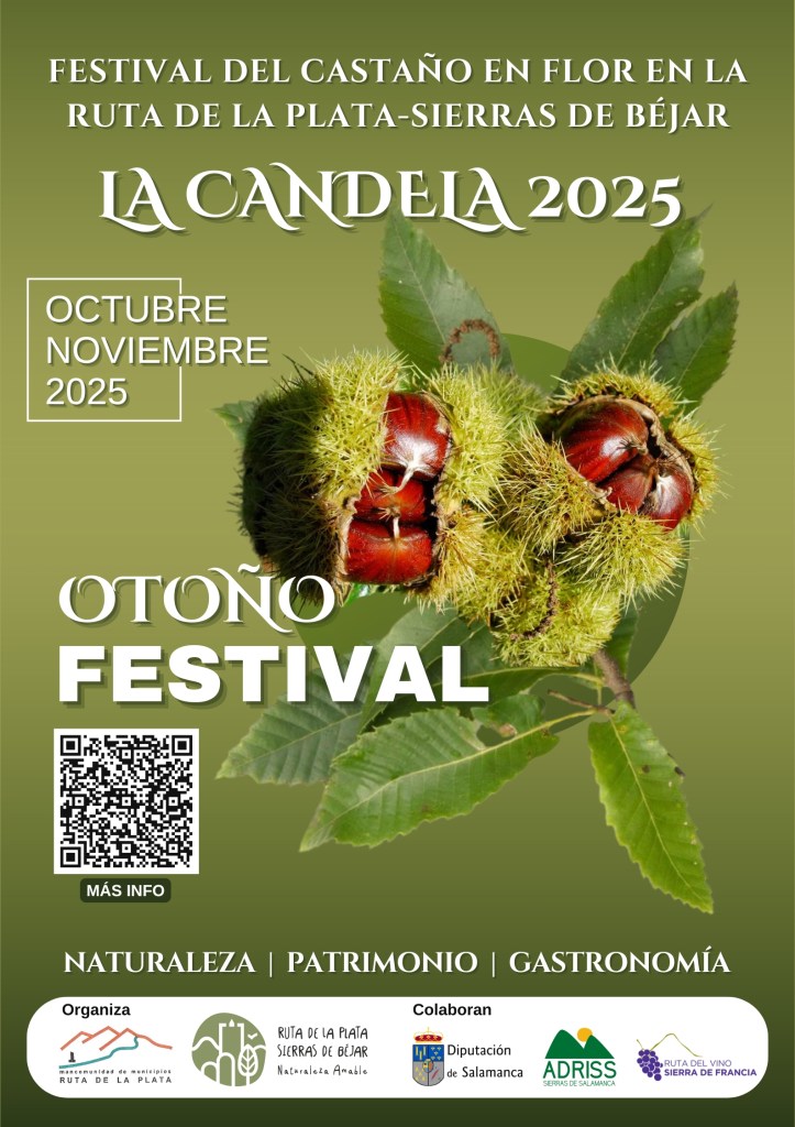 Festival del castaño en la Ruta de la Plata-Sierras de Béjar. En este otoño presentamos la segunda parte, en la que participan los restantes 12 municipios: Colmenar de Montemayor, La Hoya, Fresnedoso, Ledrada, La Calzada de Béjar, Navalmoral de Béjar, Peñacaballera, Valdelageve, Sanchotello, Pinedas, Valdehijaderos y El Cerro.