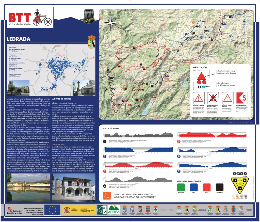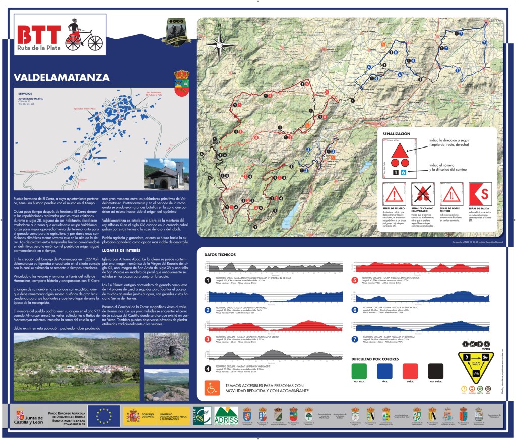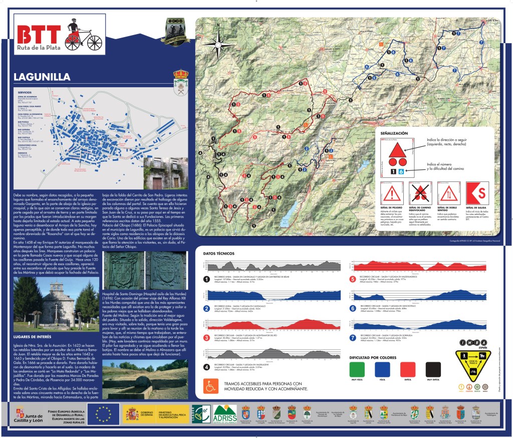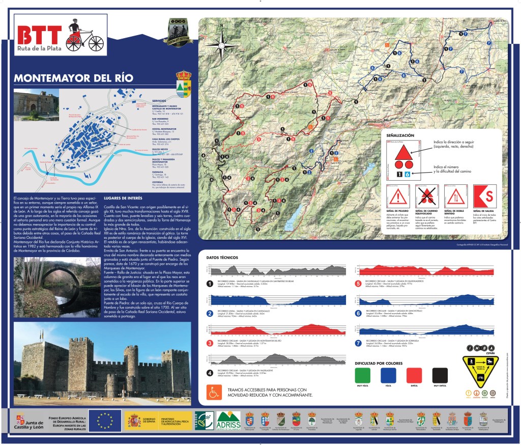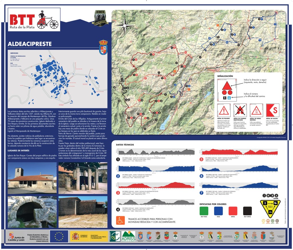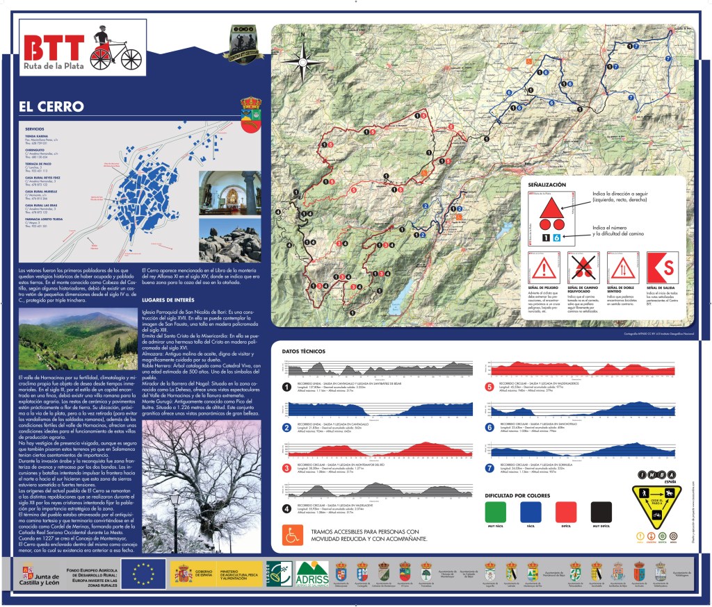 Completa señalización y equipamiento en cada uno de los pueblos que forman el BTT Ruta de la Plata, para que puedas comenzar en el pueblo que tú decidas, con Rutas adaptadas a las características técnicas de cada ciclista.