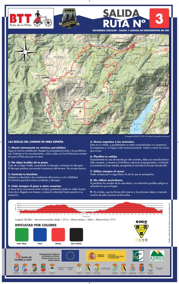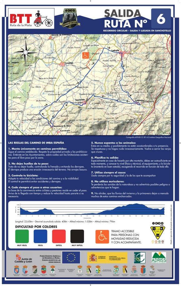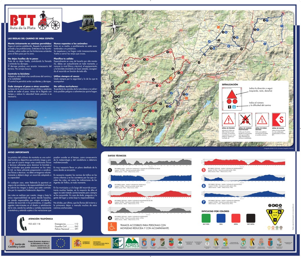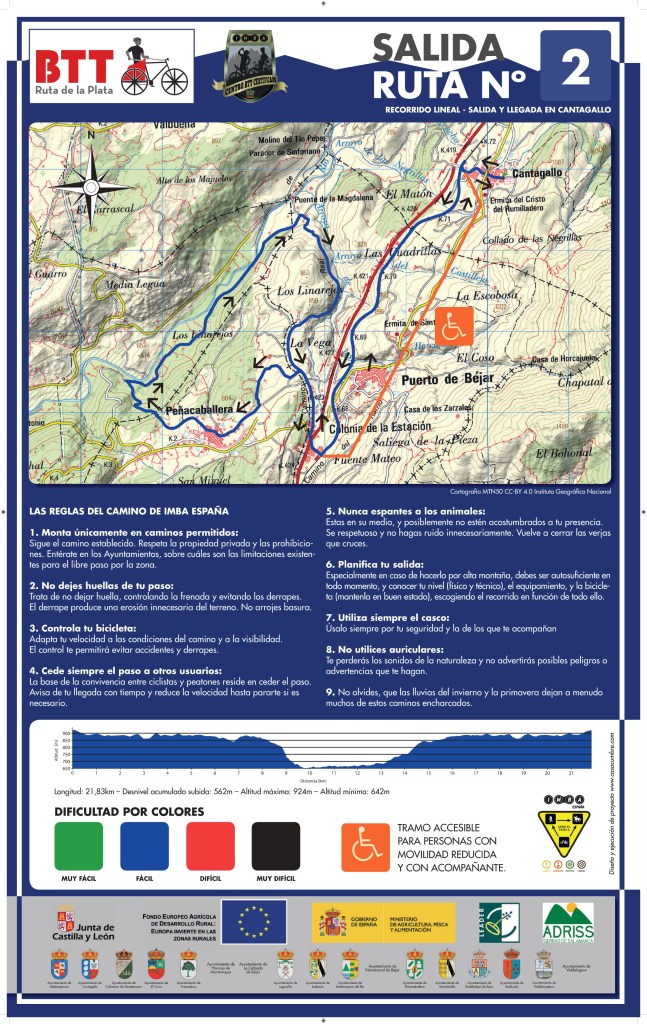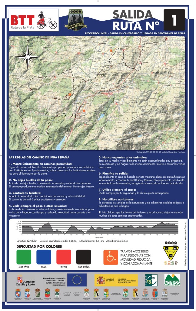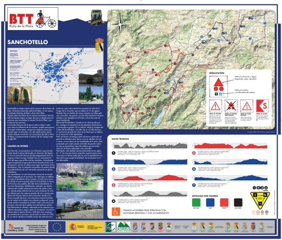 350 kilómetros de rutas de ciclismo BTT, distribuidos en 7 Rutas de BTT , que abarcan 20 pueblos, pertenecientes a la Mancomunidad Ruta de la Plata, localizados en el sureste de la provincia de Salamanca. La ruta recorrerá parajes declarados Reserva de la biosfera, en el entorno de la Ruta de la Plata, próximos al rio Tormes, todo el valle del Sangusin y contará con un ramal muy próximo a la ciudad de Béjar, que partirá de Cantagallo hacia el sur.